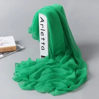 Silk Scarf Long Solid Color Beach Shawl Large Chiffon - Green