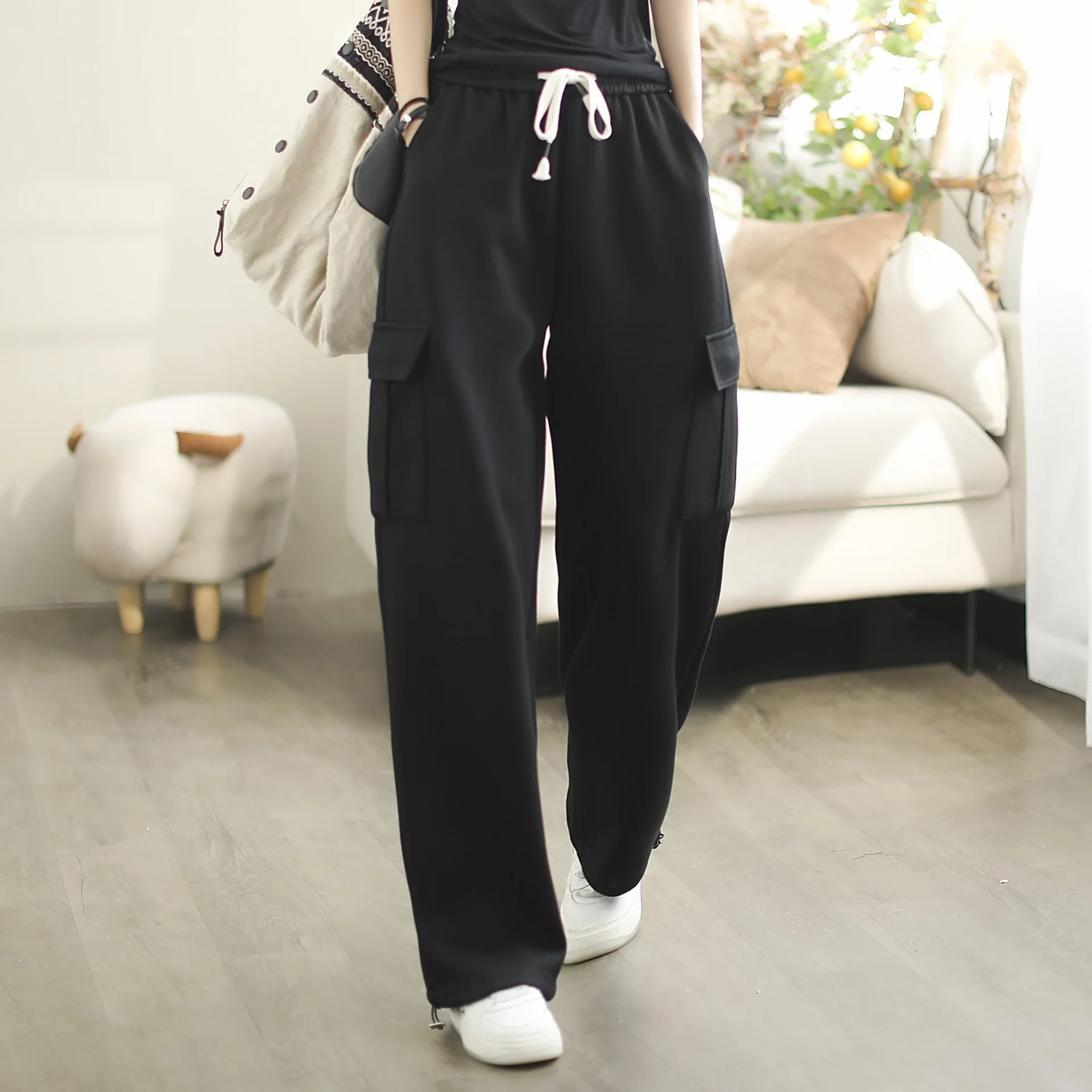 Simple All-match Solid Color Loose Working Pants - Black