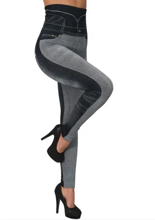 Simple Basic Seamless Cotton Imitation Denim Leggings High Waist Sexy