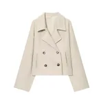 Simple Double Breasted Short Woolen Coat Top - Apricot
