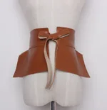 Simple Extra Wide Leather Belt Waist Slimming - Camel