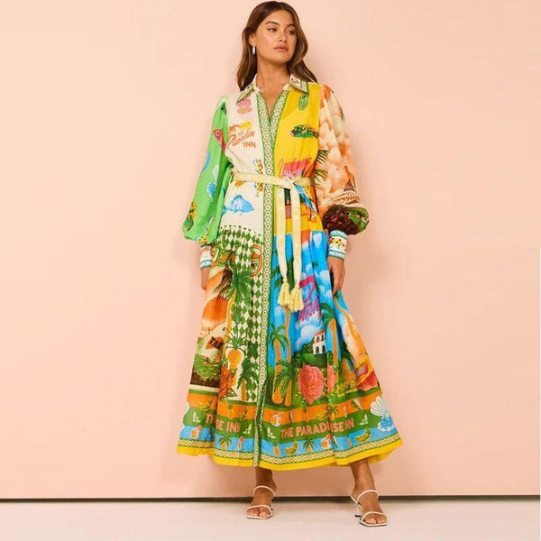 Single-breasted Long Lantern Sleeve Graffiti Printing