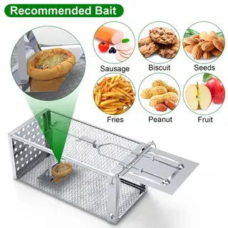 Highlights Welded stainless steel No harmful chemicals or poisons. A wide range of settings, including homes, gardens, warehouses, and commercial properties. Easy To Use High sensitivity Specification Dimensions: 11.81 in * 5.12 in * 5.63 in Weight: 0.9000 lb Available Ship to: United States Type: Rat Trap Size: 11.81x5.12x5.63in Material: Stainless Steel Animal Type: Rat Weather-Resistant: No Details *Features*: *High Sensitivity Gravity Pedal*:Designed with one-way door mechanism,this rat trap’s door will be auto-locked immediately once small rodent animal step into cage trap and touched the pedal slightly.The rodent cannot escape,leading to efficient and effective trapping. *Sturdy Construction*:Constructed with welded stainless steel,this rat trap cage is built to withstand rust and resist corrosion,ensuring a long-lasting and reliable tool for rodent control. *Safe Humane*:The single-direction design of this rodent trap allows for capturing rodents without harming them,providing a humane solution to pest problems while minimizing the risk of injury to pets or children. No harmful chemicals or poisons. *Versatile Placement*:Due to its robust design,the stainless steel rat trap can be used in various environments,both indoors and outdoors,making it suitable for a wide range of settings,including homes,gardens,warehouses,and commercial properties. *Easy To Use*:The trap is simple to set and maintain. Just bait the trap,set up the trigger,place it in the desired location,and check regularly to ensure any captured rodents can be released or disposed of appropriately. Friendly Reminder: 1. Be careful when using this mouse trap. 2. Only suitable for small rodents. *Specifications*: Product Type: Rat Trap Color: Silver Material: Welded Stainless Steel Item Size: 30x13x14.3cm/11.81x5.12x5.63in Item Weight: 406g/0.9 lbs Package Size: 31*18*16cm/12.2*7.09*6.3in Package Weight: 610g/1.34lbs *Package Lists*: 1x Rat Trap 1xUser Manual