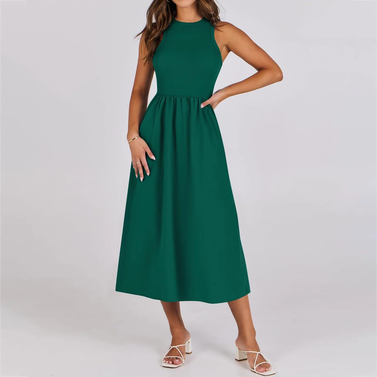 Sleeveless Knitted Stitching Long With Pockets Advanced Sense Dress -