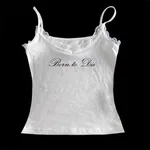 Sleeveless Lace Letter Print Sling Short Top - White 1