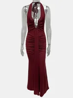 Sleeveless Long Pleated Mermaid Sexy Party Dress - Wine
