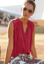 Sleeveless Loose Decorative Nail Solid Color All-match T-shirt - Red