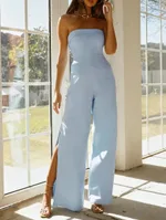 Sleeveless Tube Top Slit High Waist Jumpsuit -
