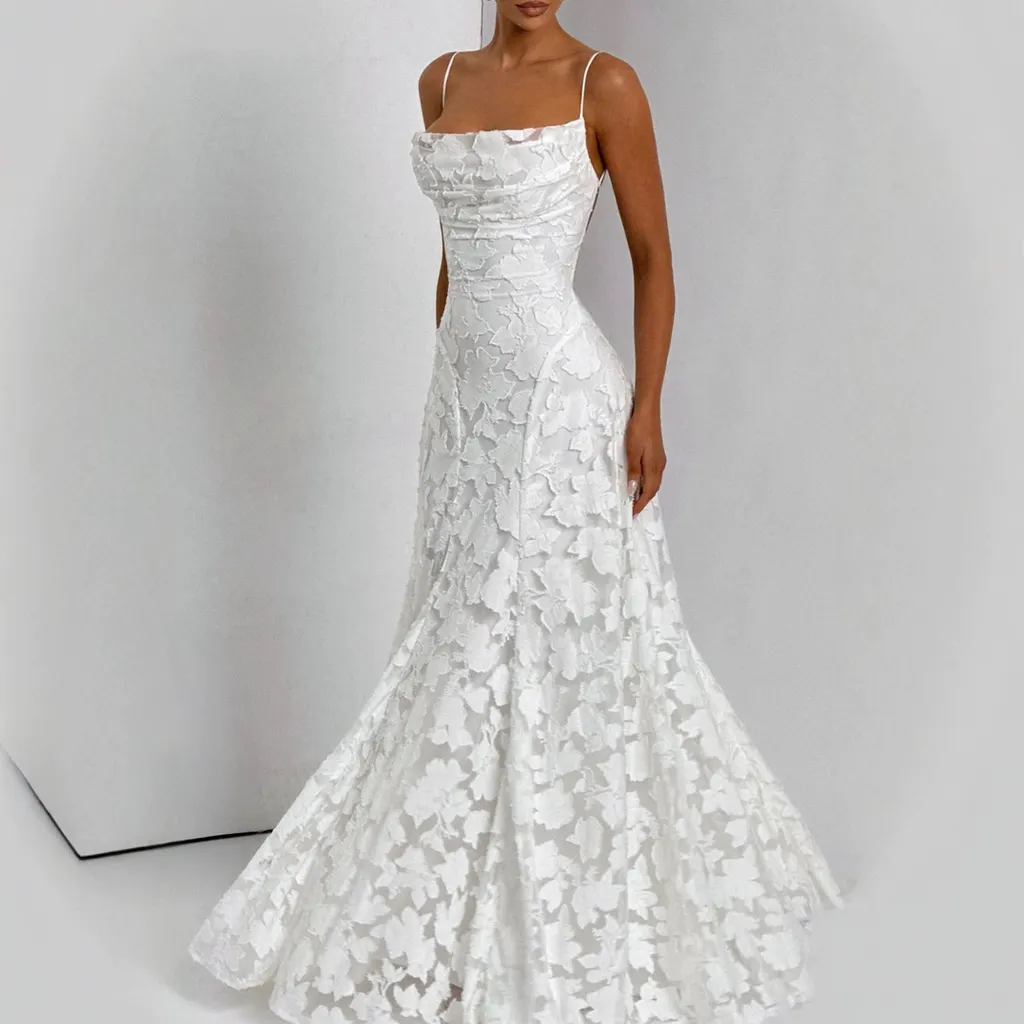 Slim-fit Sling Backless Lace Up Design Dress - White