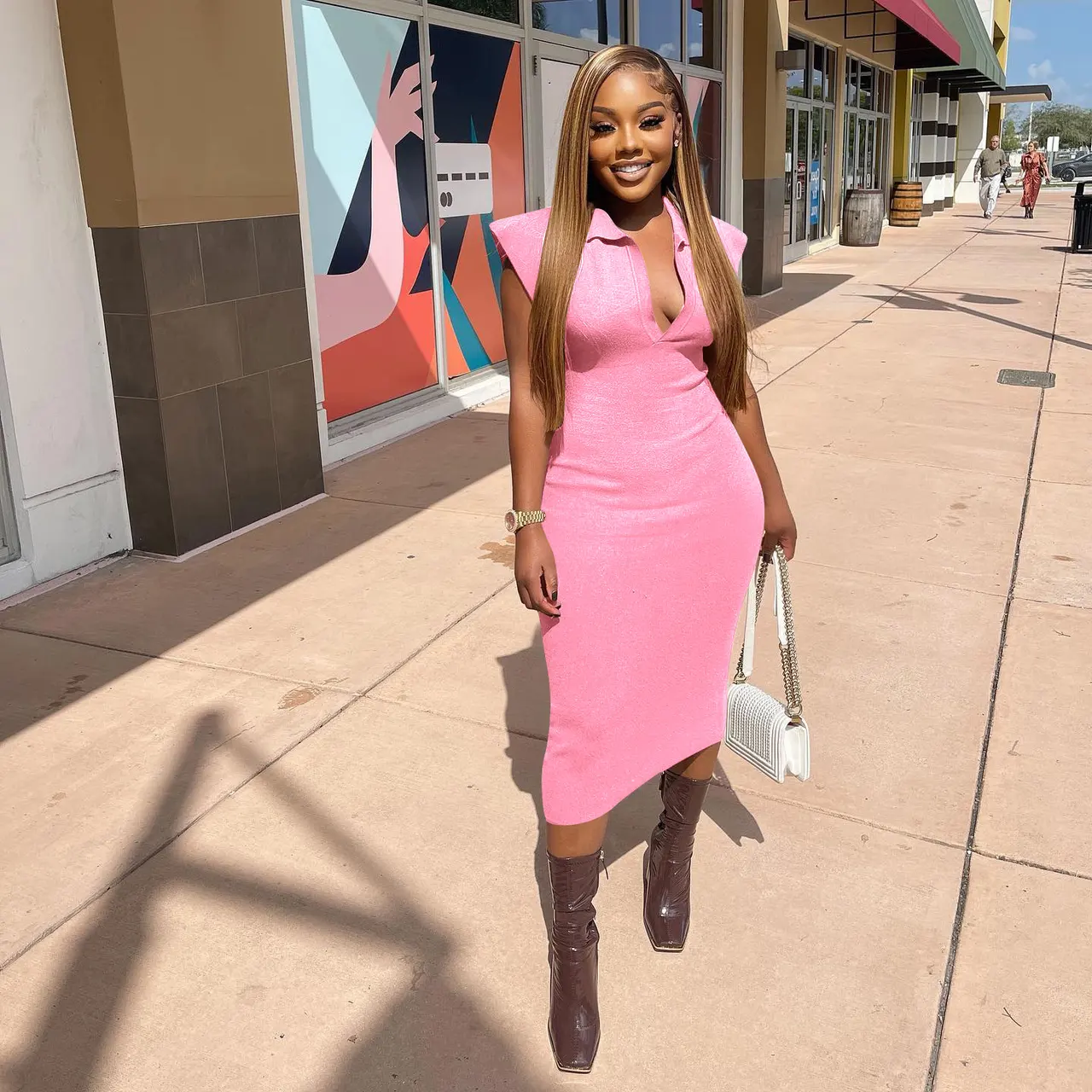 Solid Color Roman Cloth Sleeveless Dress - Pink