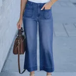 Slimming And Wide Leg Straight-leg Pants Washed Jeans Cropped Pants -