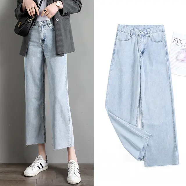 Product Information: Style: wide leg pants Pants length: Nine-point pants Waist type: high waist Cowboy color: light blue Style: all-match Thickness: Thin section Popular elements: washed, distressed Size Information: Size: 25,26,27,28,29,30,31 Size Waist circumference Hips Thigh circumference Front gear Back gear Pants length 25 62 90 57 28 36 87 26 64.5 92 58 28.5 36.5 88 27 67 96 59 29 37 89 28 69.5 98 60 29.5 37.5 90 29 72 100 61 30 38 91 30 74.5 102 62 30.5 38.5 92 31 77 104 63 31 39 93 Precautions: 1. Asian Sizes Are 1 To 2 Sizes Smaller Than European And American People. Choose The Larger Size If Your Size Between Two Sizes. Differences Due To . 2. Please Check The Size Chart Carefully Before You Buy The Item, If You Don't Know How To Choose Size, Please Contact Our Customer Service. 3.As You Know, The Different Computers Display Colors Differently, The Color Of The Actual Item May Vary Slightly From The Following Images. Packing List: Jeans*1