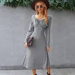Product information : Style: basic model Length: Medium and long skirt. Skirt: Swing Collar: square collar Sleeve type: regular sleeve Sleeve length: Long sleeve Type: high waist. Main fabric composition: polyester fiber Content of main fabric components: 71%-80% Color: red, gray, green, black, navy blue Size Information: Sizes: S,M,L,XL Note: 1. Asian sizes are 1 to 2 sizes smaller than European and American people. Choose the larger size if your size between two sizes. differences due to . 2. Please check the size chart carefully before you buy the item, if you don't know how to choose size, please contact our customer service. 3.As you know, the different computers display colors differently, the color of the actual item may vary slightly fromthe following images. Packing list: Dress *1