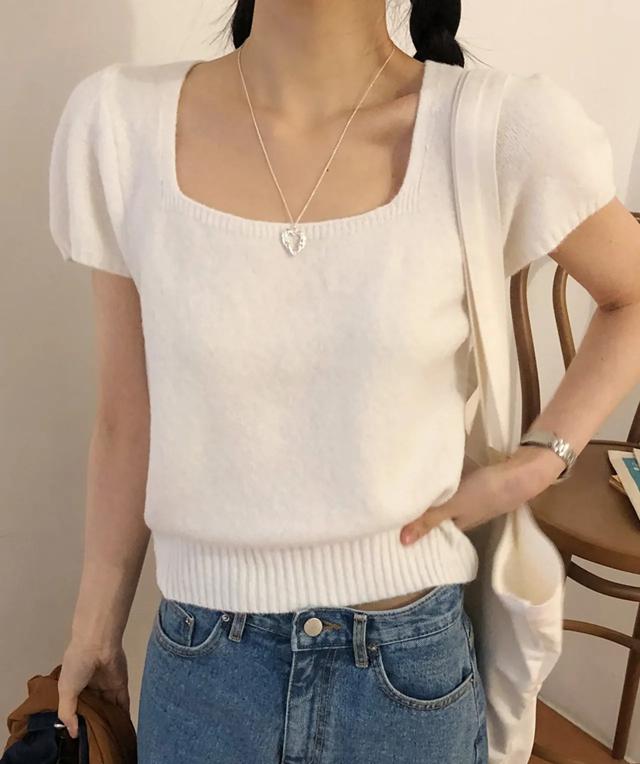 Solid Color Temperament Square Collar Pullover Short Sleeve Sweater -