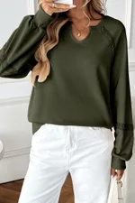 Solid Color Half-open Collar Stitching Lace Loose And Long Sleeves
