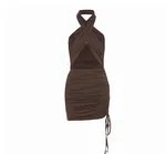 Solid Color Hanging Neck Sexy Backless Dresses - Coffee