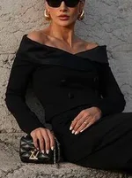 Solid Color Off-shoulder Crop Top & High-waisted Pants Set - Top