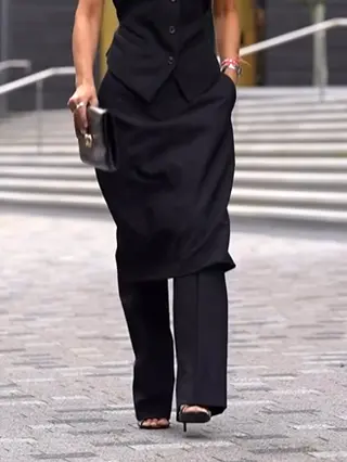 Solid Color One-shoulder Vest & High-waisted Pants Suit - Pants