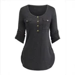 Solid Color Round Neck Long Sleeve Button Shirt -