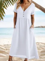 Solid Color Temperament Commute Dress - White