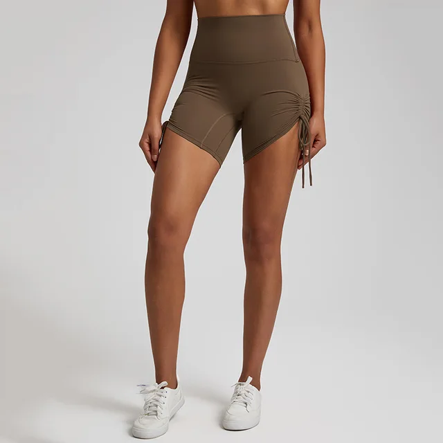 Sports Shorts Drawstring Adjustable High Waist - Sugar Brown