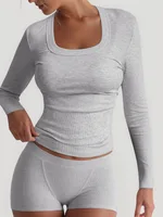 Product information: Pattern: solid color Color: white gray, black, dark blue, gray Pants length: Shorts Size: S,M,L,XL Style type: Street hipster Popular elements: solid color Fabric name: knitted Sleeve type: regular sleeve Main fabric composition: viscose fiber Applicable Gender: Female Sleeve length: long sleeve Note: 1. Asian sizes are 1 to 2 sizes smaller than European and American people. Choose the larger size if your size between two sizes. differences due to . 2. Please check the size chart carefully before you buy the item, if you don't know how to choose size, please contact our customer service. 3.As you know, the different computers display colors differently, the color of the actual item may vary slightly from the following images. Packing list 1*top+pants Product Image: