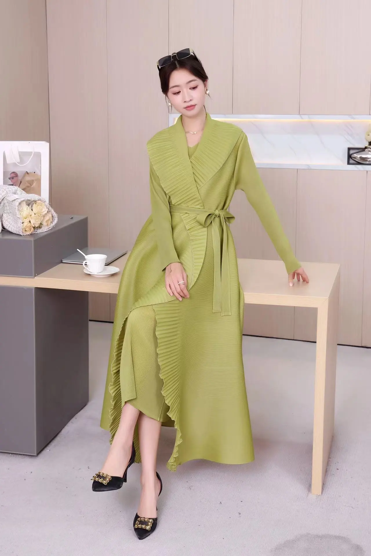 Spring And Autumn Close Edge Belt Solid Color Dress Shawl Two-piece
