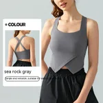 Square Collar Camisole Yoga Vest Top With Chest Pad Integrated - Gray