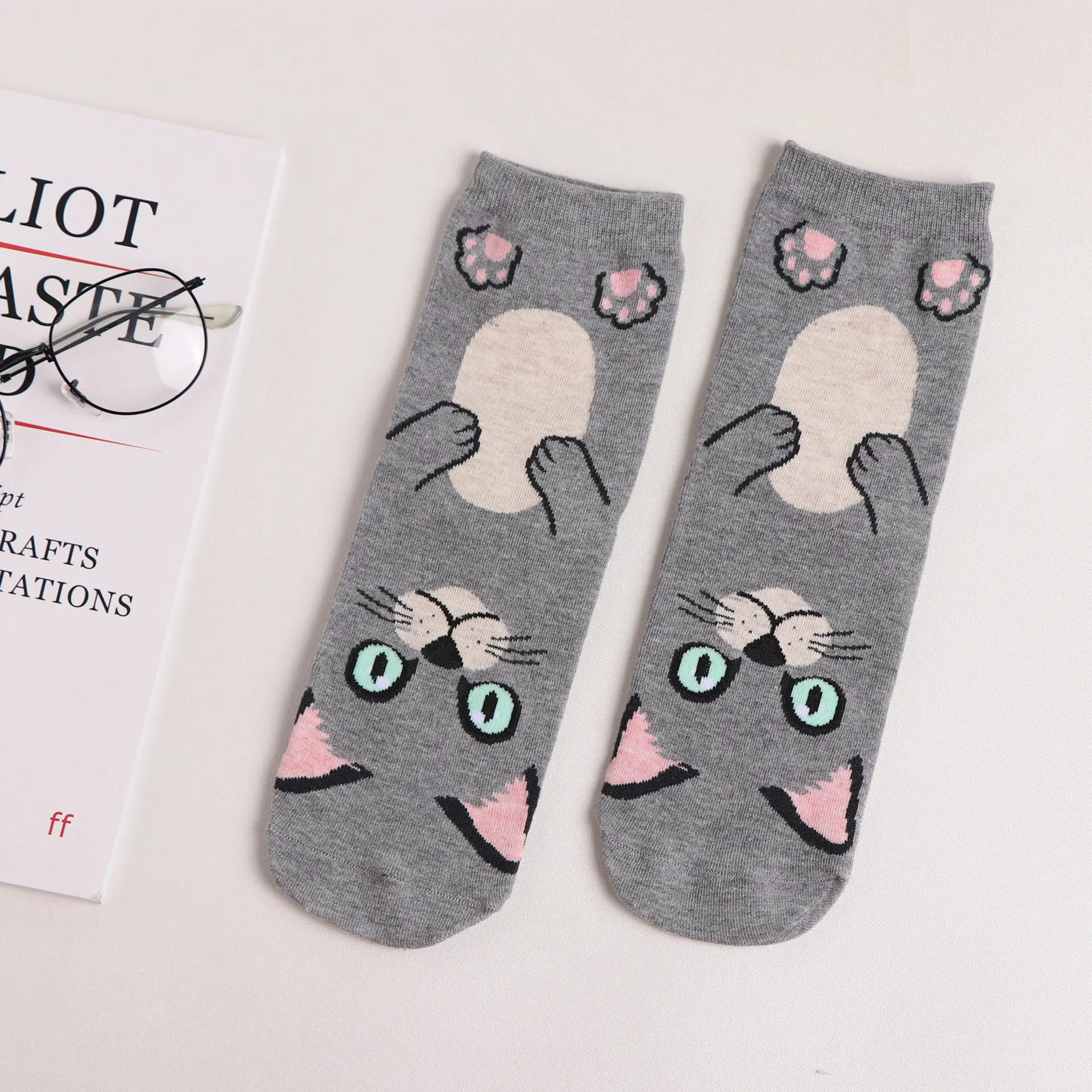 Straight Socks Animal Female Cat Cotton Tube Socks - Light Gray