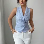Striped Sleeveless Shirt Lace-up Waist-controlled