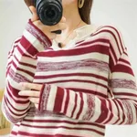 Striped V-neck Knitted Top Thin Inner Bottoming