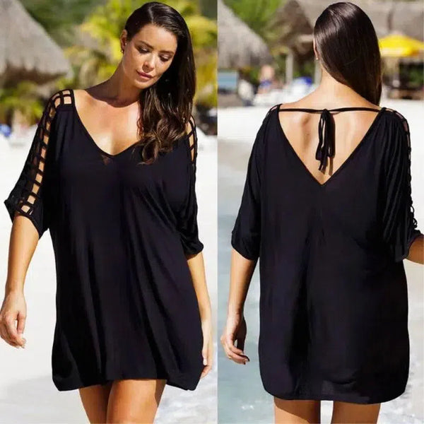 Summer Plus Size M to 3XL Cover Up Women Swimwear Beach Blouses Women Bikini Beach Wear Cover-Up Black Dress
