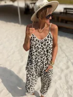 Summer And Leopard Print Loose Sling Jumpsuit -
