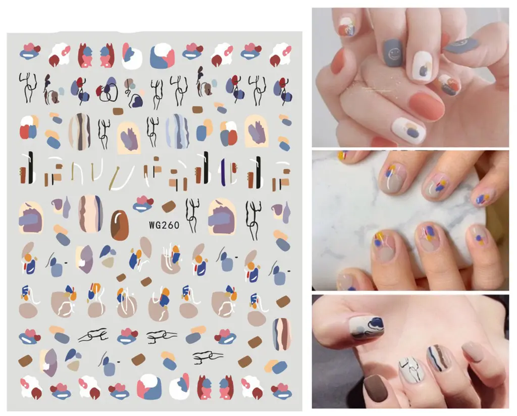 Product information: Material: Sticker Color: Multicolor Shelf life: three years Net content: 6G Nail Art Product Category: Nail Sticker Specifications: 1WG252, 2WG253, 3WG254, 4WG255, 5WG256, 6WG257, 7WG258, 8WG259, 9WG260, 10WG261, 11WG262, 12WG263, 13WG264