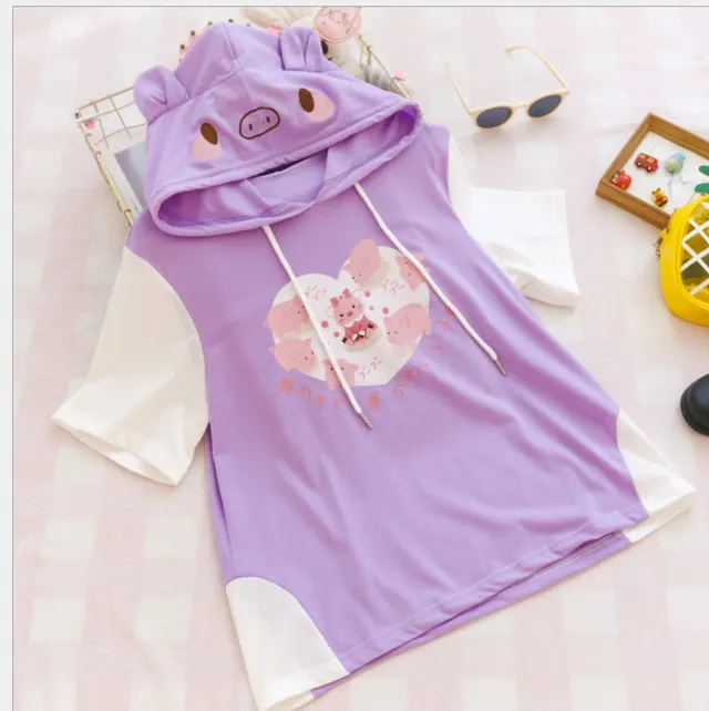 Product information: Applicable age: 18-24 years old Material: Cotton Pattern: Cartoon anime Collar: Hooded Style: sweet Sweetness: college Color classification: A green B pink rabbit C black and white panda D pink E white hooded F pink piggy G purple piggy H light blue four cats I pink four cats J black four cats K light blue little ancestor L white little ancestor M Pink Little Ancestor N Yellow Fortune Dog O Blue Fortune Dog P Pink Fortune Dog Fabric material: Cotton Sleeve type: conventional Combination form: single piece Ingredient content: 81% (inclusive) -90% (inclusive) Liner type: cotton liner Year season: Summer sleeve length: short sleeve Style: Hedging Thickness: conventional Length: regular clothing Edition type: straight Size Information: size: one size Note: 1. Asian sizes are 1 to 2 sizes smaller than European and American people. Choose the larger size if your size between two sizes. differences due to . 2. Please check the size chart carefully before you buy the item, if you don't know how to choose size, please contact our customer service. 3.As you know, the different computers display colors differently, the color of the actual item may vary slightly from the following images. Packing list: Sweater*1