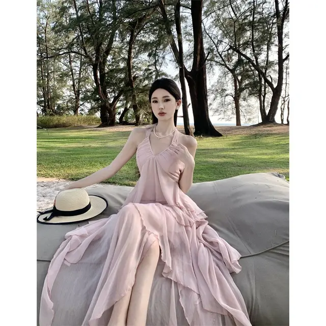 Product information: Pattern: solid color Skirt type: A- line skirt Color: F pink Size: S,M,L Popular elements: no back Style: Halter Main fabric composition: Polyester (polyester fiber) Skirt Category: Dress Style: vacation style Craft: collage/stitching Size: Note: 1. Asian sizes are 1 to 2 sizes smaller than European and American people. Choose the larger size if your size between two sizes. differences due to . 2. Please check the size chart carefully before you buy the item, if you don't know how to choose size, please contact our customer service. 3.As you know, the different computers display colors differently, the color of the actual item may vary slightly from the following images. Packing list: Dress*1 Product Image: