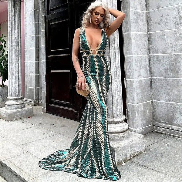 Product Description: Suspender Long Tail Irregular Striped Evening Dress