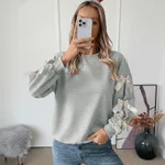 Sweet Bow Decorated Long Sleeve Sweatshirt - Flower Gray