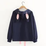 Sweet Spring Rabbit Embroidered Hoodie - Navy Blue