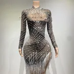 Tassel Dress Birthday Party Long Sleeve Ironing Transparent - Black