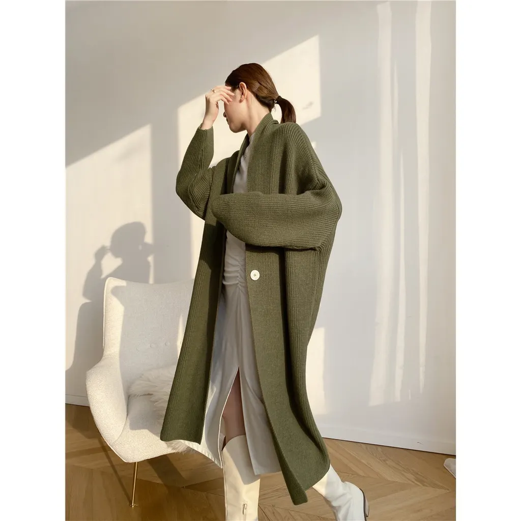 Temperament Type Mid-length Cardigan Sweater Coat Autumn And Winter -