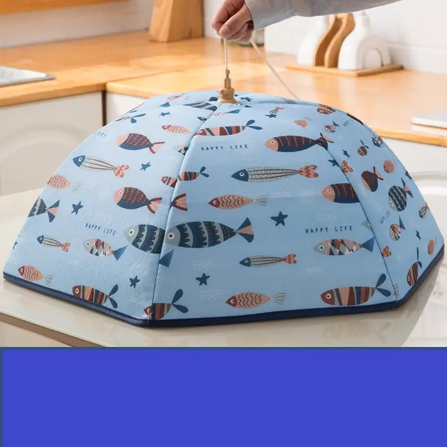 Product Information Outer material: Oxford cloth Inner material: thermal insulation aluminum film Product style: round, square Product function: food insulation, anti-mosquito and anti-insect Product features: internal aluminum film material, heat preservation and freshness, foldable and easy to store. Style: Nordic style Popular elements: cartoon Applicable space: restaurant Color Classification: 1style: Large clear flower-diameter 70CM can hold 5-6 dishes (collection plus purchase and free tablecloth) 2style: Large blue fish-diameter 70CM can hold 5-6 dishes (collection plus purchase and free tablecloth) 3style: Large pink grid-diameter 70CM can hold 5-6 dishes (collection plus purchase and free tablecloth) 4style: Large red knife and fork-diameter 70CM can hold 5-6 dishes (collection plus purchase and free tablecloth) 5style: Oversized blue fish with a diameter of 80CM can hold 6-8 dishes (collection plus purchase and free tablecloth) 6style: Extra-large red knife and fork with a diameter of 80CM can hold 6-8 dishes (collection plus purchase and tablecloth) 7style: Oversized pink grid-diameter 80CM can hold 6-8 dishes (collection plus purchase and free tablecloth) 8style: Super large clear flower-diameter 80CM can hold 6-8 dishes (collection plus purchase and free tablecloth) Packing List Dish cover*1