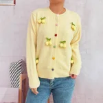 Product information: Pattern: Flowers Color: red, white, pink, yellow, light khaki Size: S,M,L Version: general Style type: fresh and sweet Combination form: Single piece Popular elements: 3D/stereo pattern Style: Cardigan Thickness: medium Fabric name: Polyester Sleeve type: conventional sleeve Main fabric composition: Polyester (polyester fiber) Size: Note: 1. Asian sizes are 1 to 2 sizes smaller than European and American people. Choose the larger size if your size between two sizes. differences due to . 2. Please check the size chart carefully before you buy the item, if you don't know how to choose size, please contact our customer service. 3.As you know, the different computers display colors differently, the color of the actual item may vary slightly from the following images. Packing list: Sweater*1pcs Product Image:
