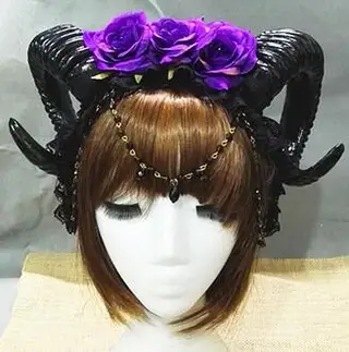 Three Roses Headband Halloween Vampire Demonsheep Horn Veil Hair