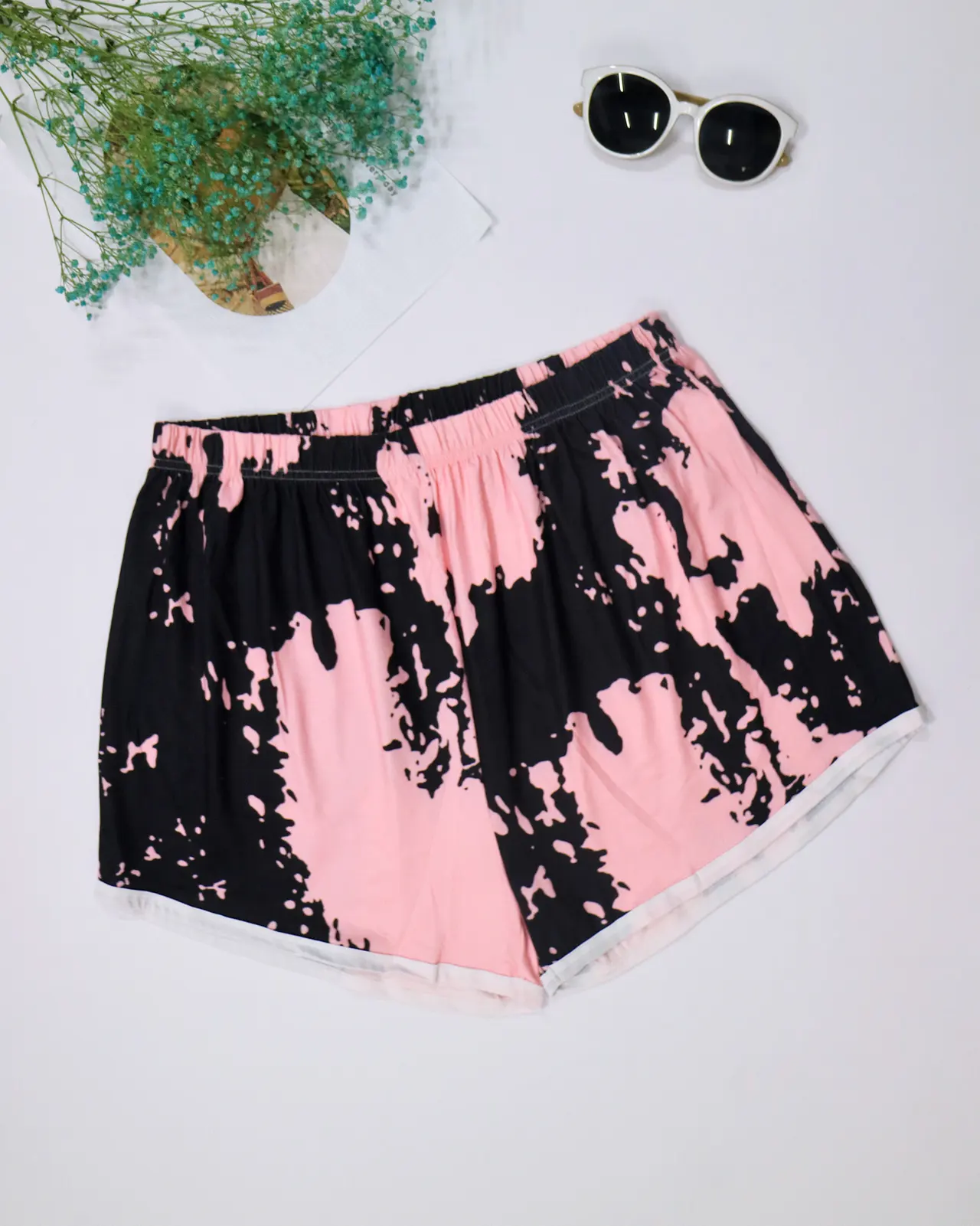 Tie-dyed Printed Shorts Home - Pink Black