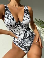 Tie-dyed Printed One-piece Swimsuit - Black
