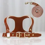 Product information: Material: Polyester Product category: chest strap Color: brown PU chest and back traction suit, red PU chest and back traction suit, pink PU chest and back traction suit, silver PU chest and back traction suit, golden PU chest and back traction suit, black PU chest and back traction suit Specification (length * width): S, M Packing list : Dog Leash X1