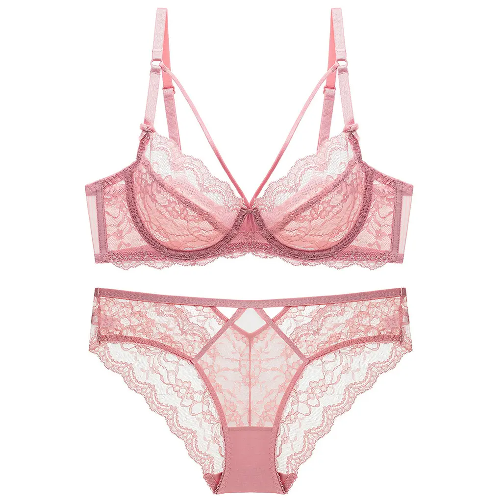 Transparent Underwear Panties Small Bra Set - Pink