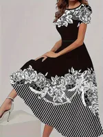 Trendy All-matching Floral Pattern Short Sleeve Round Neck Dress -