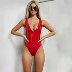 Triangular One-piece Swimsuit Low Cut Tight Swimsuit - Red